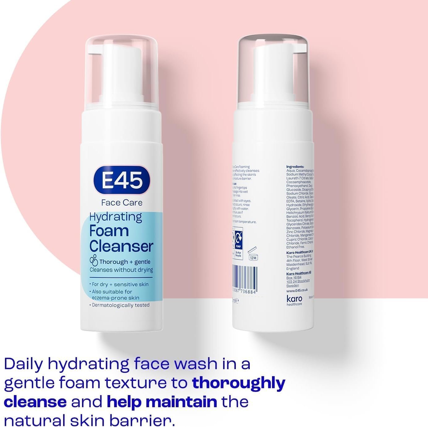 - GENTLE AND NON-DRYING – E45’s Face Foaming Cleanser is an everyday facial cleanser that gently cleanses your skin whilst preserving its natural moisture barrier, leaving your skin thoroughly cleansed without feeling dry. Cleansing the skin in the evening removes the dirt, oil, impurities, and make-up that build up during the day. It is also important to use a cleanser in the morning as dirt and excess oil can build up overnight when our hands, hair, and bedding come into contact with our skin.