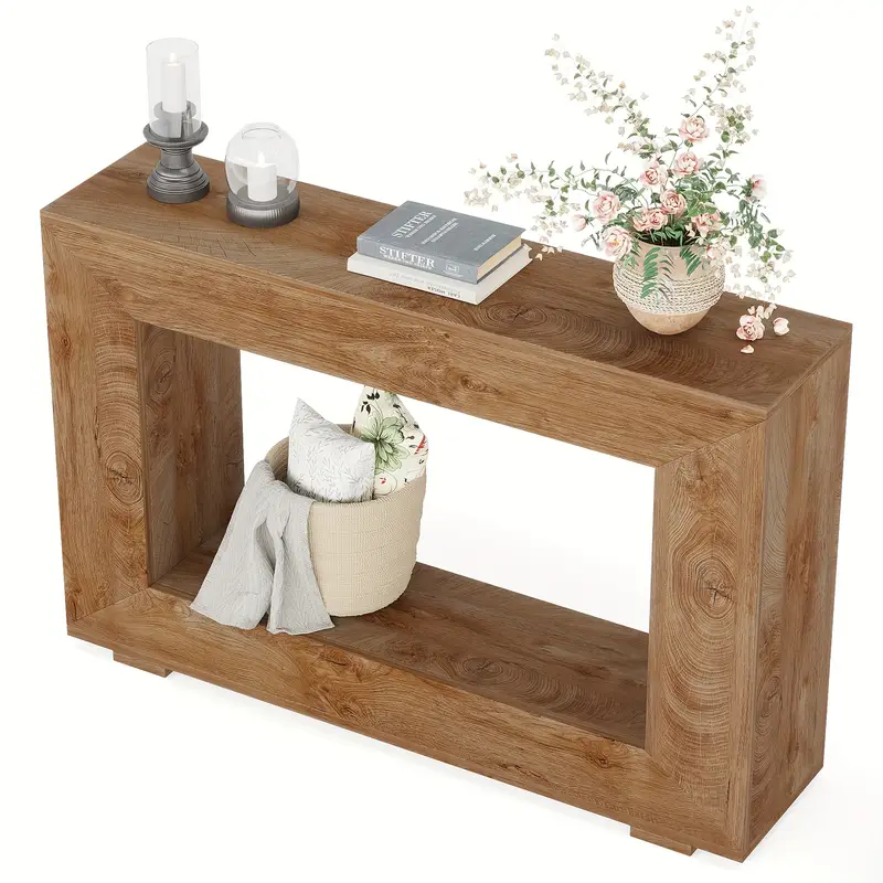 Transform your home with the timeless elegance of the 47-inch Farmhouse Console Table. Designed with a contemporary flair, this console table effortlessly merges style and practicality, making it a perfect fit for entryways, living rooms, or hallways. Its sturdy wood construction ensures lasting durability, while the natural tones bring a cozy, family-friendly vibe to your space.