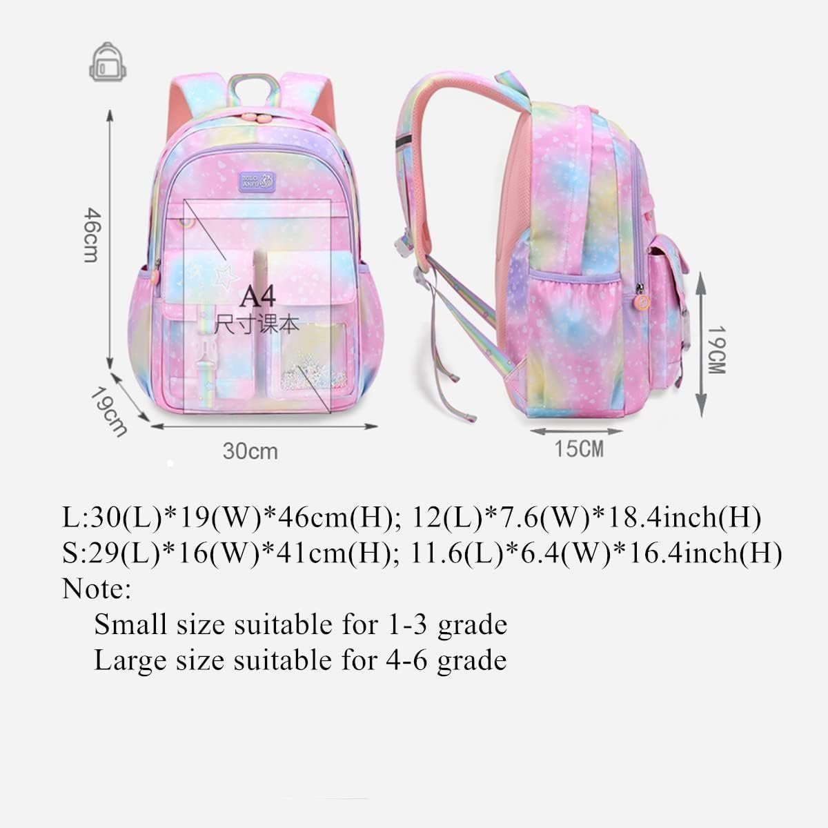 - Our Backpack Size: 30(L)*19(W)*46cm(H); 12(L)*7.6(W)*18.4inch(H), Weight: 0.75KG Kids Backpack light weight and sturdy, to reduce the pressure of the student’s back to school, is a good choice for children to school!